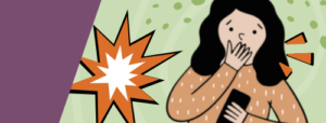 Online safety image for Hwb pages - boy with hand on head, sweating looking at his phone